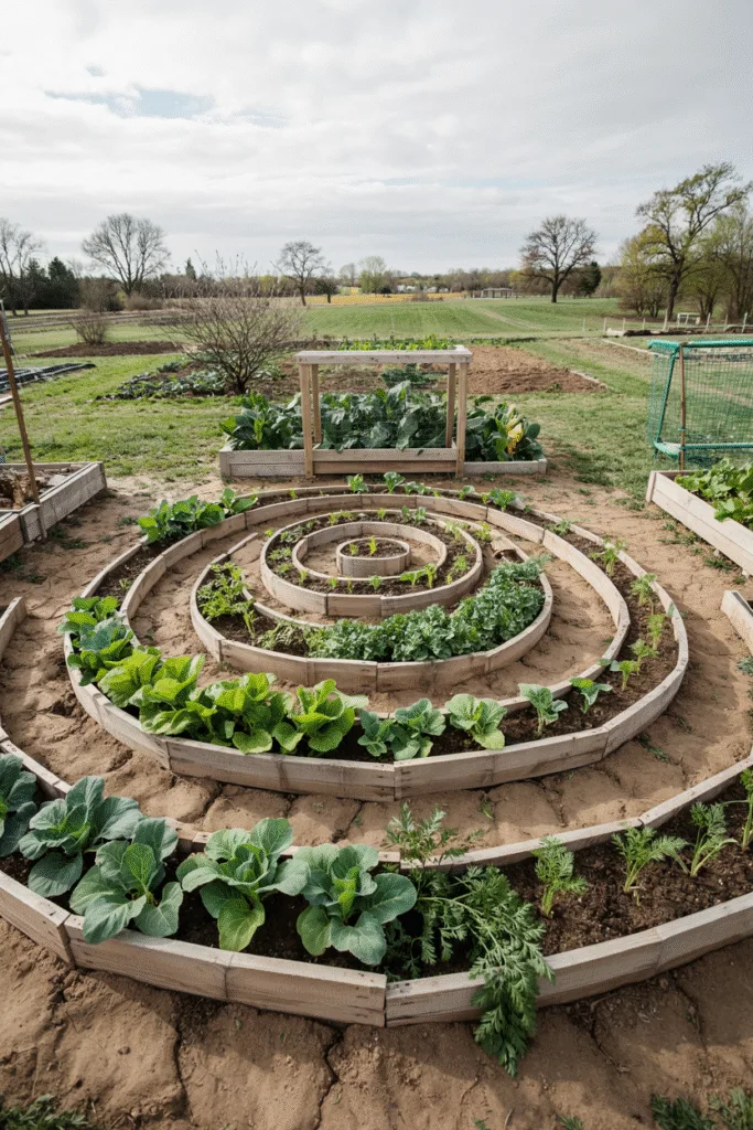 Inspired by ancient earthworks, I built a low, spiraling mound of soil and planted winter veggies along the curves. The raised spiral retains heat and drains well, perfect for root crops like carrots. Tending it feels like walking a labyrinth, and it’s a unique twist on traditional beds.